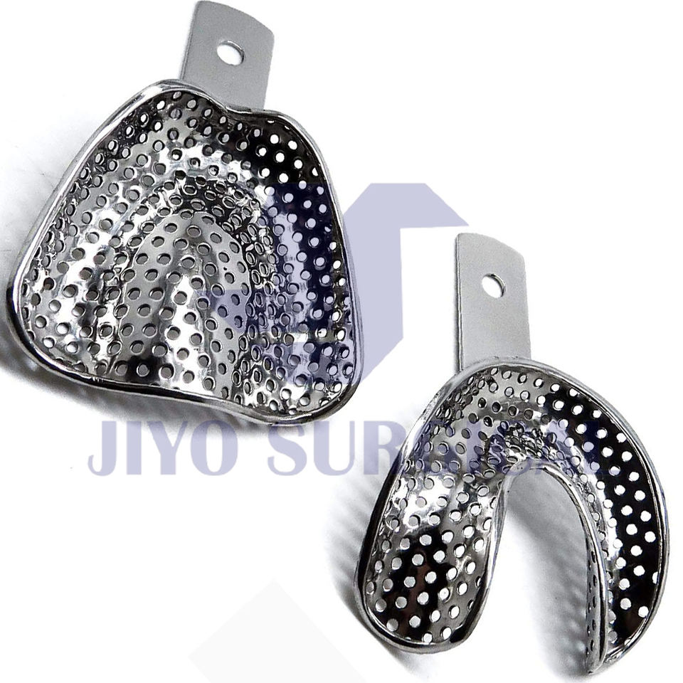 ถาดพิมพ์ฟันด้านบนเล็กใหญ่ปกติมีรูพรุนทำจากสแตนเลสด้านบนและด้านล่างถาดการแสดงผลทางทันตกรรม