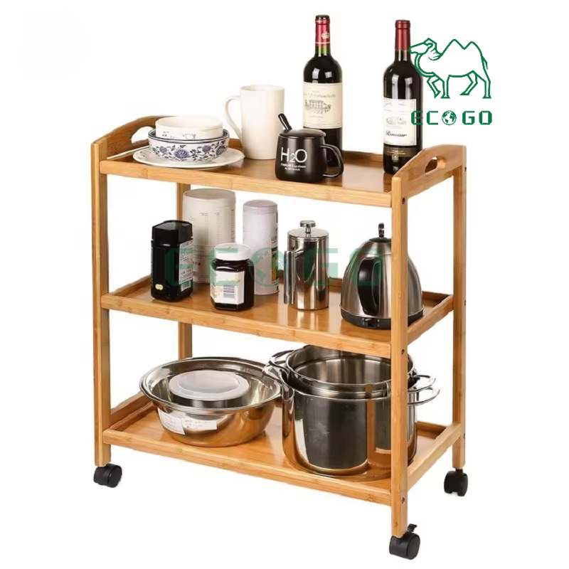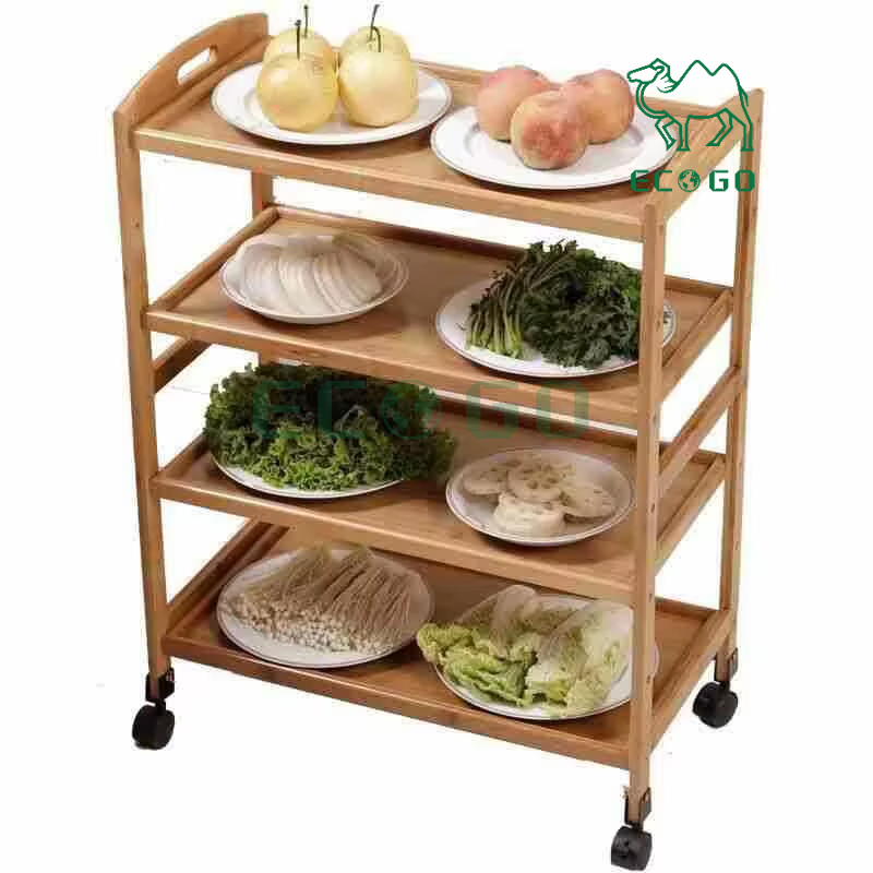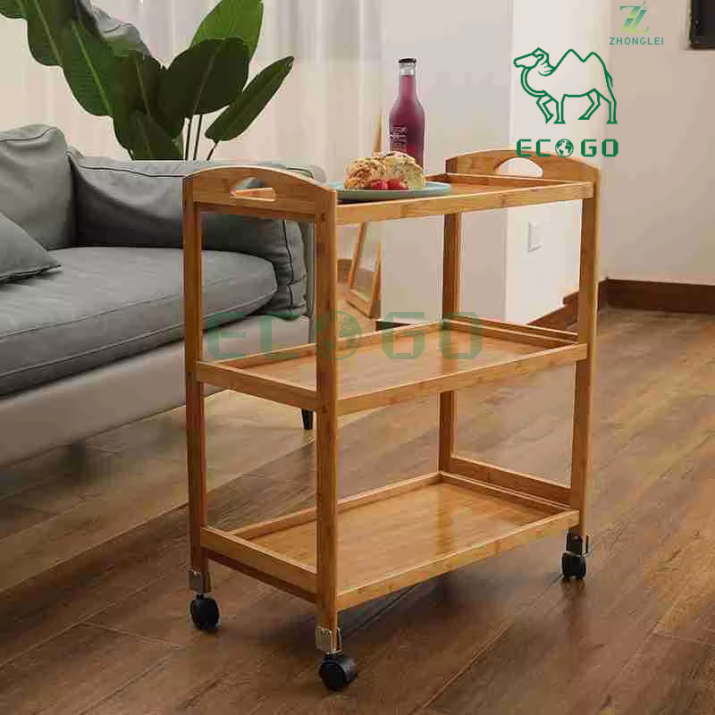 Small Living Room Side Cabinet Trolley Kitchen Serving Cart Food Cart Bamboo Dining Trolley