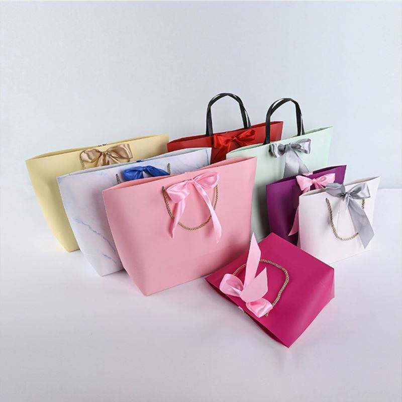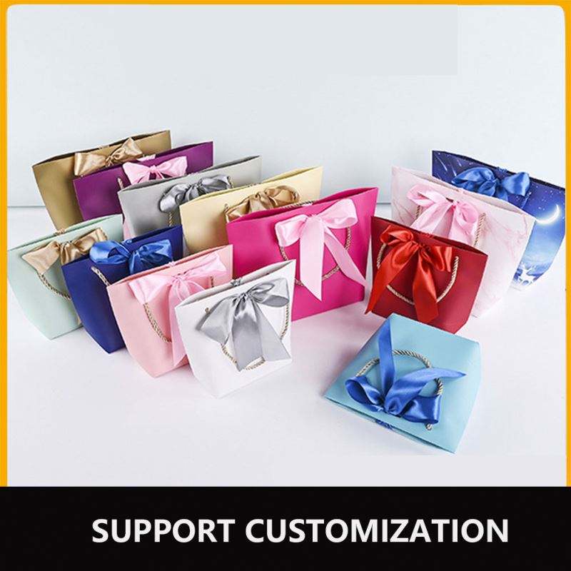 ถุงกระดาษสำหรับใช้เป็นของขวัญพิมพ์ลายแฟนซีขนาดเล็กน่ารักขนาดเล็กพร้อมโบว์ริบบิ้น