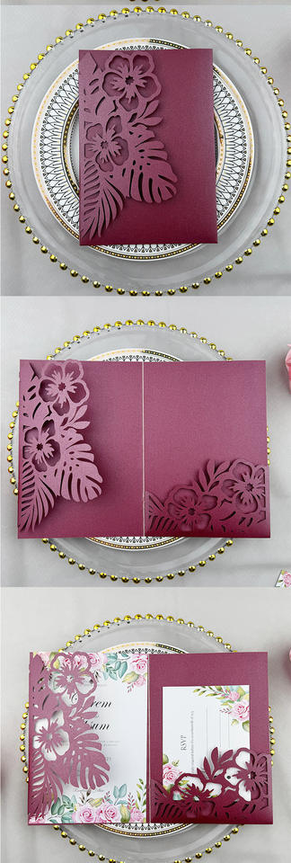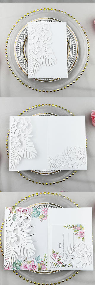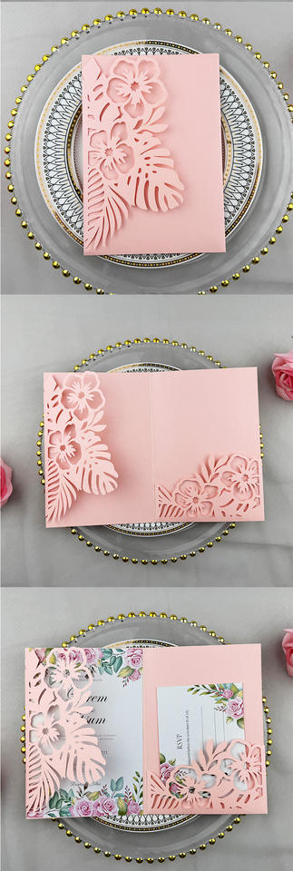 การ์ดเชิญงานแต่งงานกระดาษแบบกำหนดเอง MOQ ต่ำ การ์ดอวยพรแบบตัดด้วยเลเซอร์สำหรับงานแต่งงานและวันแม่