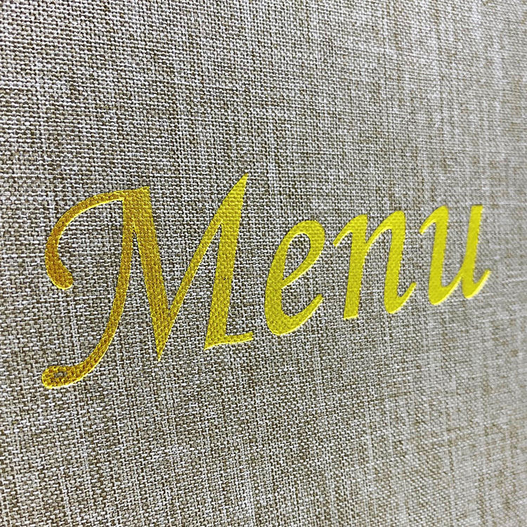 เมนูผ้า MOQ ต่ำ พร้อมปกเมนูแบบสกรูฟิกซ์ ปกเมนูแบบผ้าลินิน สำหรับร้านอาหารและบาร์