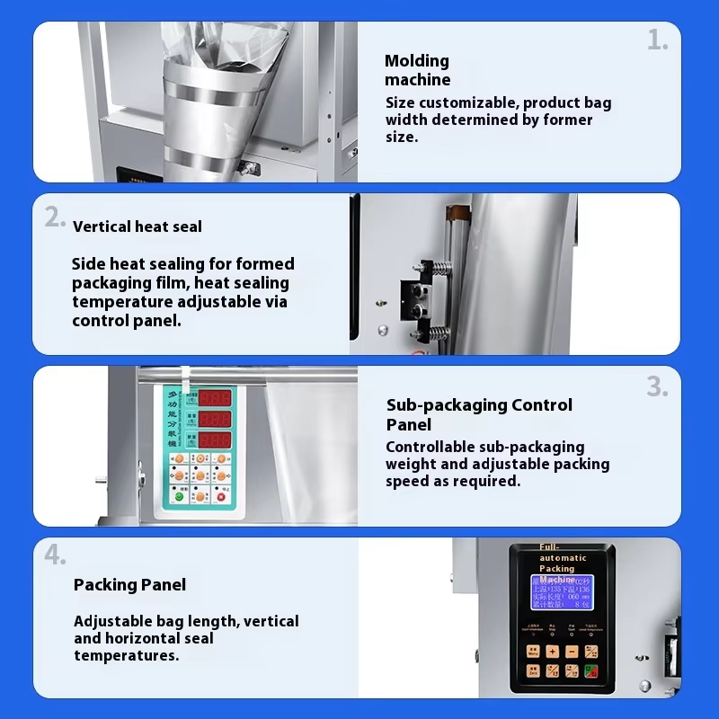 หน้าที่หลัก:ชั่งน้ำหนักขึ้นรูปบรรจุปิดผนึก