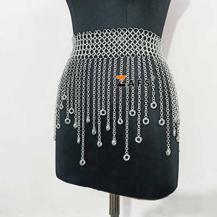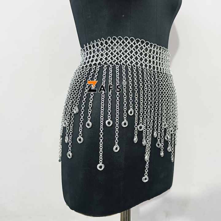 Small Medieval Ren Faire Mini Skirt Fringed Chainmail Belt Polished Aluminum Waist Armour Fashionable Christmas Gift Print Model