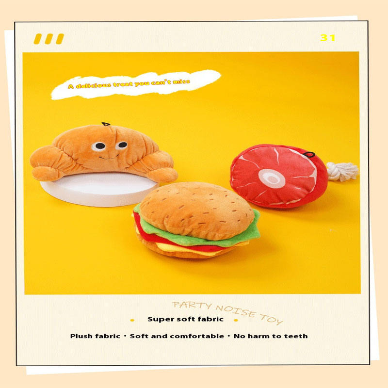 ของเล่นสุนัขขนาดเล็ก-กลาง ของเล่นบีบมีเสียง ทนทานต่อการกัด ทำจากกระดาษและผ้ากำมะหยี่ รูปเบอร์เกอร์ อุปกรณ์สำหรับสัตว์เลี้ยง