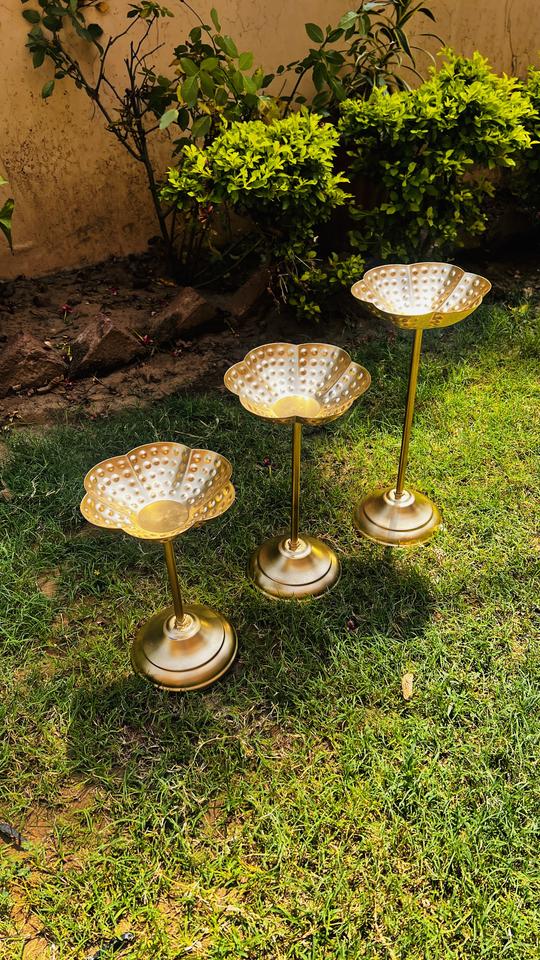 New Arrival Small Metal Pedestal Uruli Set of 3-Elegant Modern Design