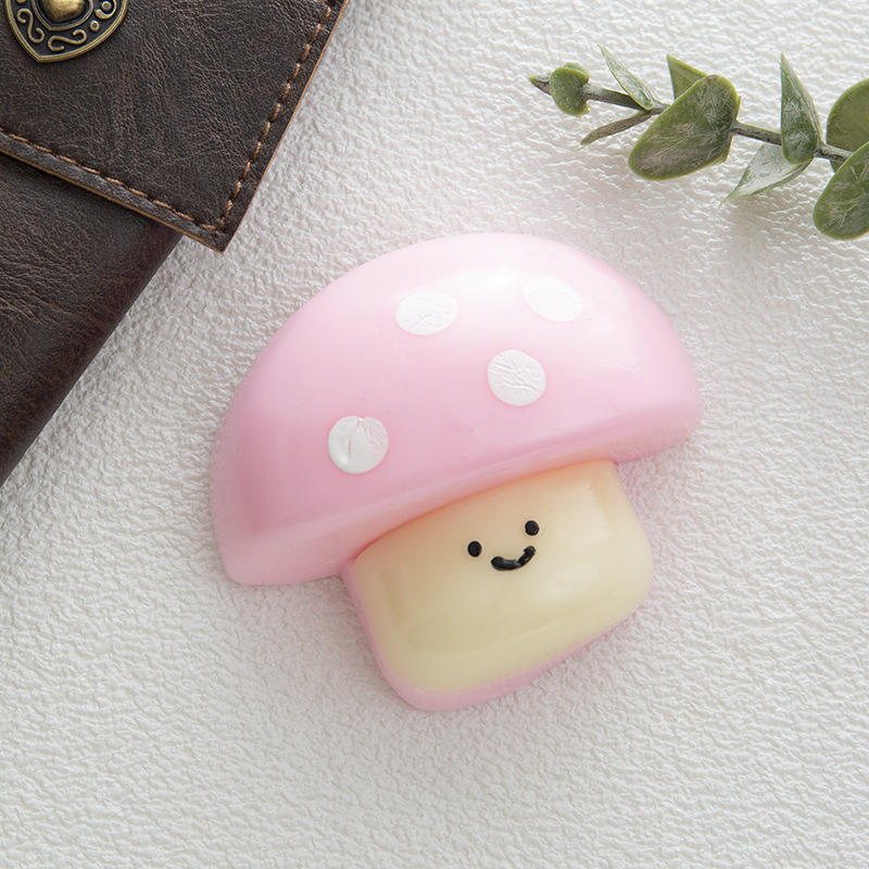 ของเล่นซิลิโคนบีบมือรูปเห็ดขนาดเล็กทำด้วยมือสำหรับเป็นของขวัญระดับสำหรับบีบครีมนุ่มบรรเทาความเครียดแบบ DIY