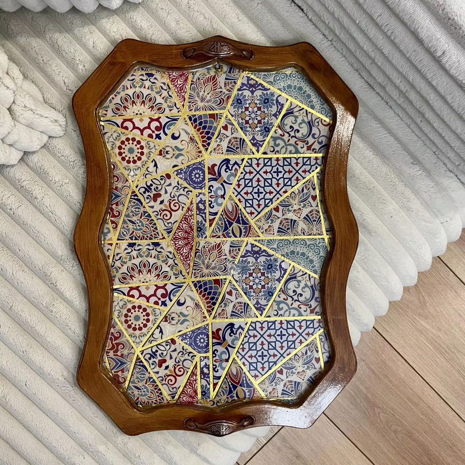 ถาดไม้พิมพ์ลายขนาดเล็ก ถาดไม้พิมพ์ลายขนาดกะทัดรัดสำหรับใส่เครื่องประดับและกุญแจ ของตกแต่ง ถาดเสิร์ฟขายส่ง