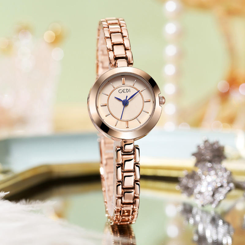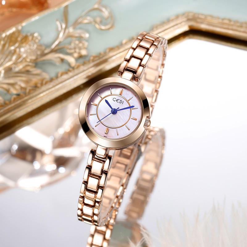 นาฬิกาควอตซ์ผู้หญิงหรูหราขนาดเล็ก ดีไซน์มินิมอล กันน้ำ ผลิตจากโลหะผสม รับผลิตตามแบบ