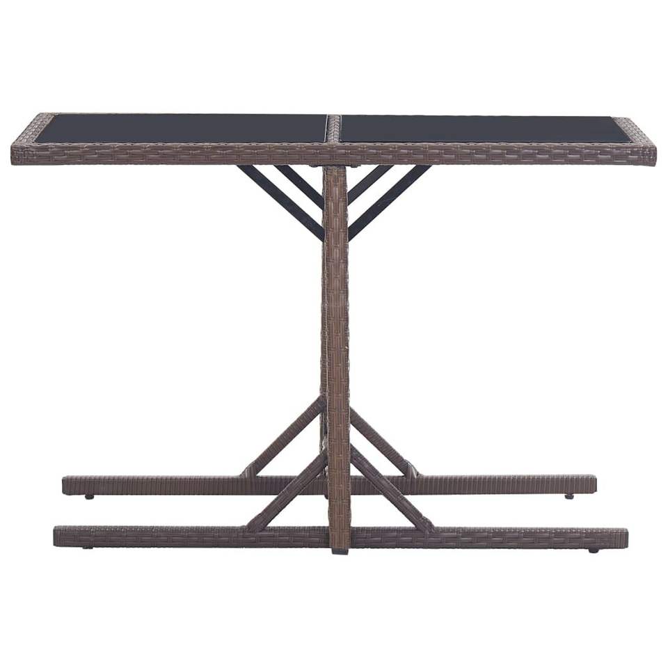 โต๊ะกลางแจ้งขนาดเล็กทำจากหวายโพลีสีน้ำตาลและเหล็กเคลือบสีฝุ่นพร้อมท็อปกระจก