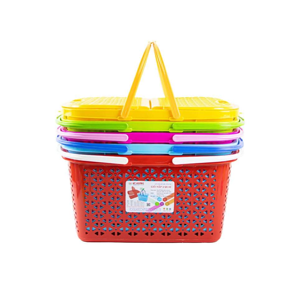 ตะกร้าเก็บของพลาสติก PP ขนาดเล็กแบบคลาสสิก กล่องจัดระเบียบอเนกประสงค์พร้อมฝาปิด ความจุขนาดใหญ่ พกพาสะดวก ผลิตในเวียดนาม