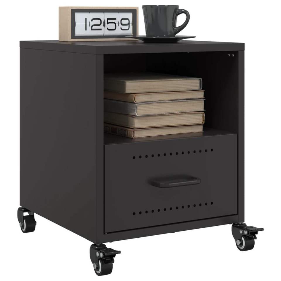 ตู้ข้างเตียงเหล็กแผ่นรีดเย็นสีดำขนาดเล็กแบบพกพา