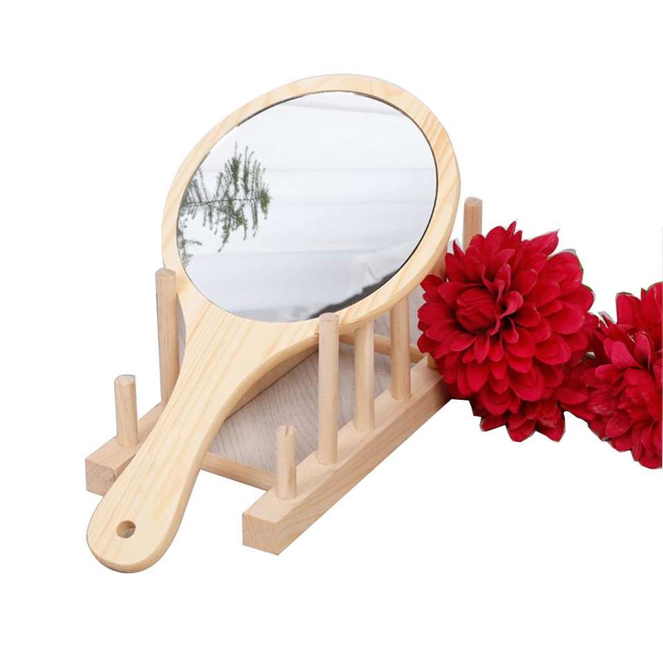กระจกแต่งหน้าไม้แบบพกพาขนาดเล็กพร้อมที่จับผลิตภัณฑ์เครื่องสำอางโต๊ะเครื่องแป้งส่วนบุคคล