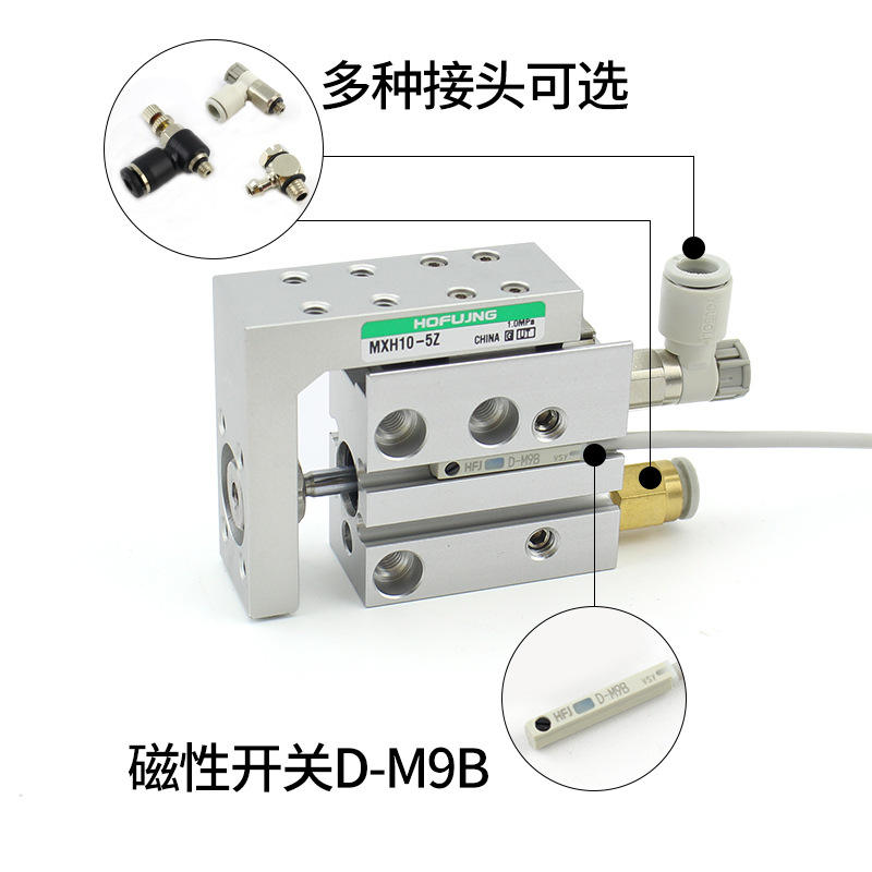 โต๊ะเลื่อนเคลื่อนที่เชิงเส้นความแม่นยำสูงขนาดเล็ก พร้อมรางเลื่อน MXH6/10/16/20-5/10/15/20/25/30/40 กระบอกสูบรางเลื่อนเชิงเส้น ชิ้นส่วนหลัก