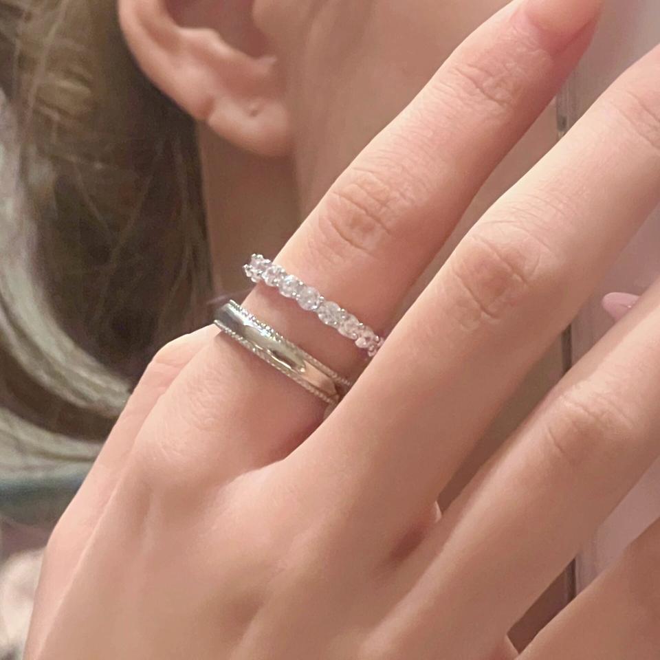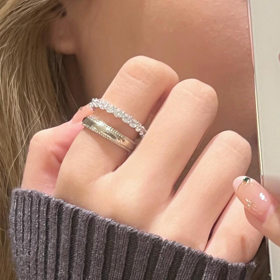 แหวนเงินแท้ S925 ประดับเพชรระยิบระยับ ดีไซน์หรูหรา สง่างาม พร้อมสร้อยคอแฟชั่นแบบเลเยอร์ประดับเพชรเต็มเส้น