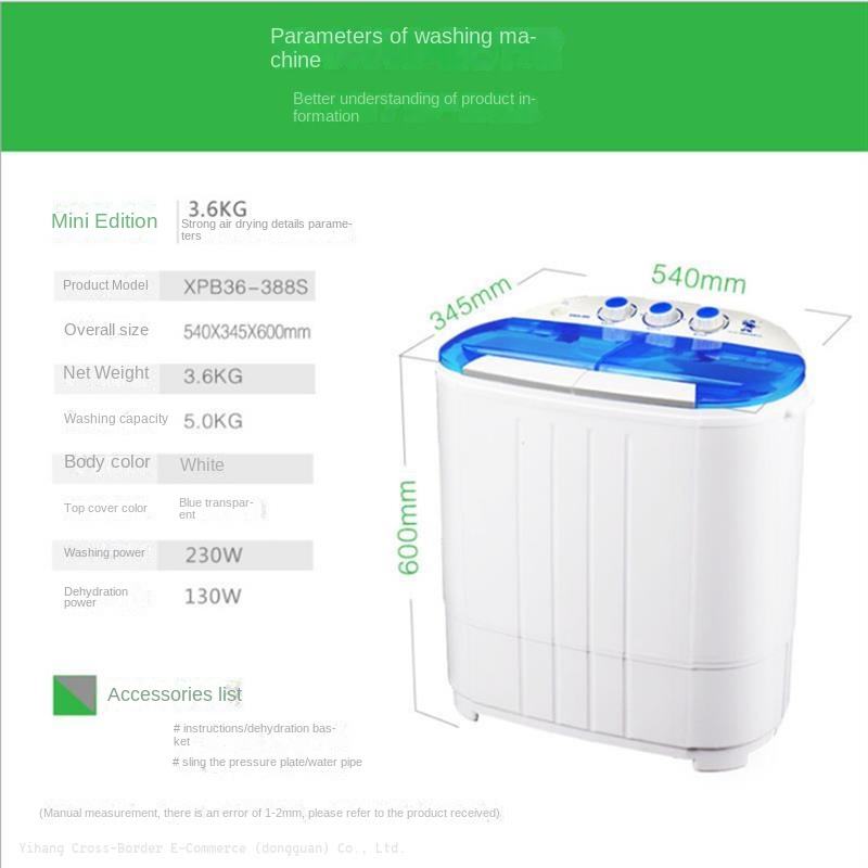 เครื่องซักผ้าขนาดเล็กกึ่งอัตโนมัติ 2 ถัง 2 สูบ 3 สวิตช์ เครื่องซักผ้าแม่ลูก