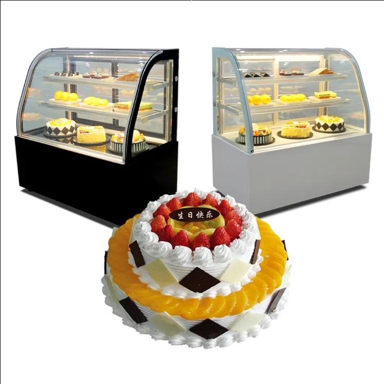 ตู้โชว์เค้กอุณหภูมิเดียวขนาดเล็กพร้อมล้อวัสดุแก้วสำหรับโชว์ขนมหวานและเค้ก