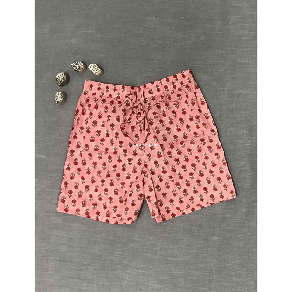 กางเกงขาสั้นผ้าฝ้ายพิมพ์ลายบล็อก 100% ขนาดเล็ก ระบายอากาศได้ดี เอวกลาง พร้อมลายตกแต่ง