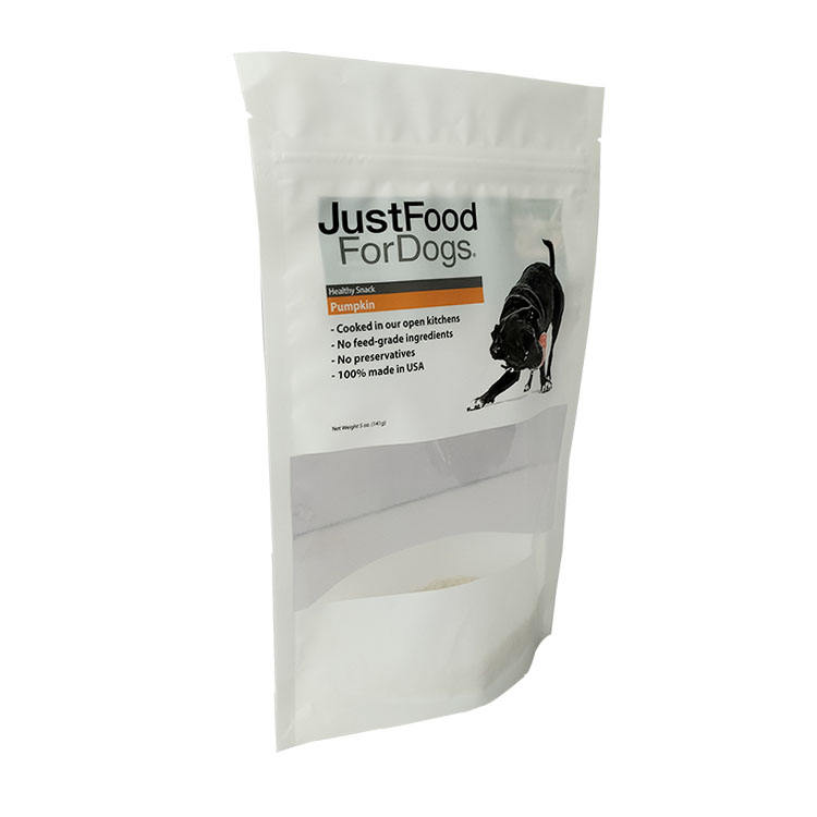 ถุงใส่อาหารสัตว์เลี้ยงกันความชื้นขนาดเล็กพร้อมซิปและหน้าต่างบรรจุภัณฑ์อาหารสุนัขพิมพ์ลายตามสั่งทำจากพลาสติก PE