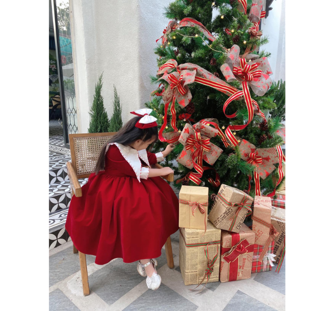 ชุดเดรสกำมะหยี่สีขาวสำหรับเด็กผู้หญิงชุดเดรสกำมะหยี่สีขาวสำหรับเด็กผลิตในเวียดนาม OEM ตามสั่ง