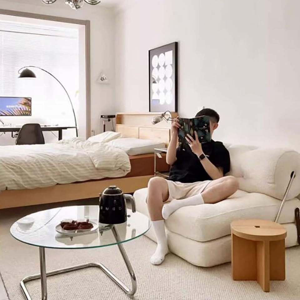 เตียงโซฟาขนาดเล็กพับได้นั่งและนอนผ้าคู่เก้าอี้พักผ่อนลมขี้เกียจผมทราย