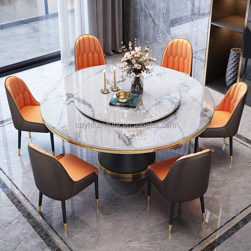 ชุดโต๊ะอาหารมีกระจก 12 ที่นั่ง สำหรับพื้นที่ขนาดเล็ก โต๊ะอาหารทรงกลมหินอ่อนสีดำ 8 ที่นั่ง