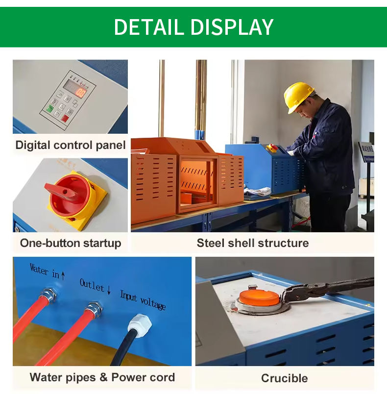 เตาหลอมเหล็กขนาดเล็ก70กก. เตาหลอมโลหะมีค่าสำหรับอุตสาหกรรมโลหะสีทองป้องกันการเกิดฟอง