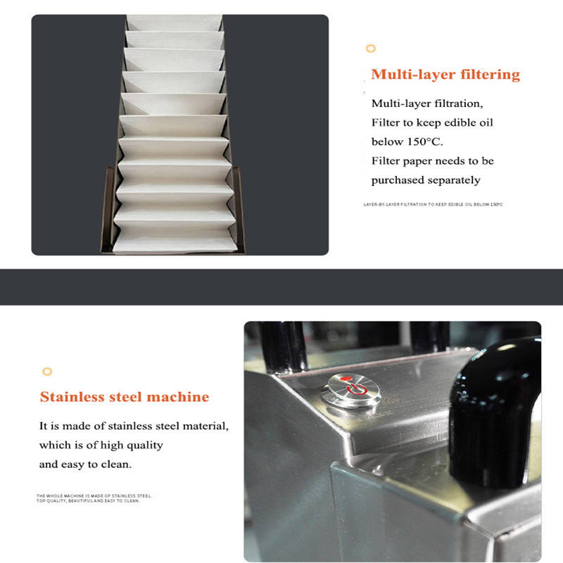 เครื่องกรองน้ำมันดอกทานตะวันขนาดเล็กเครื่องกรองน้ำมันเครื่องทอดไก่เบอร์เกอร์ทอด