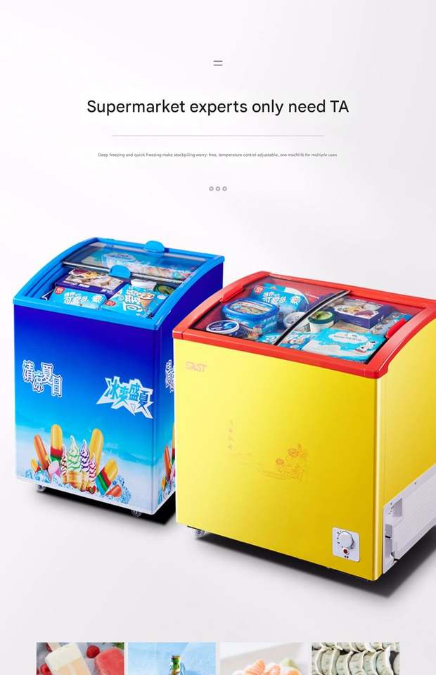 ตู้แช่แข็งแบบกระจกบานเลื่อนสำหรับซุปเปอร์มาร์เก็ตขนาดเล็ก เหมาะสำหรับเก็บไอศกรีม น้ำ เครื่องดื่ม เบียร์ อาหาร ฯลฯ