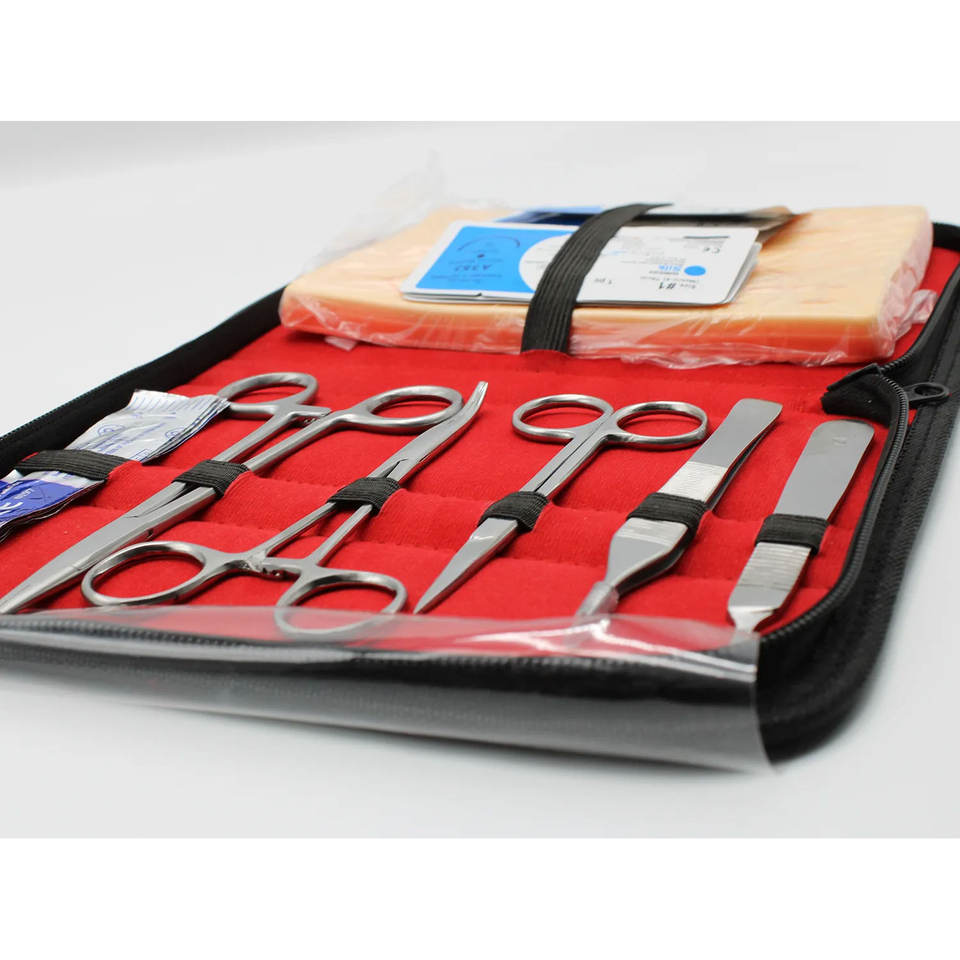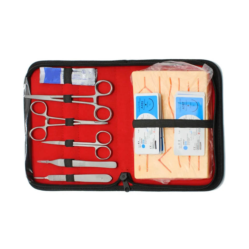 ชุดเย็บแผลขนาดเล็กสำหรับฝึกแพทย์ชุดฝึกปฏิบัติอย่างสมบูรณ์ของแพทย์สแตนเลสแผ่นรองคีมหนีบกรรไกร