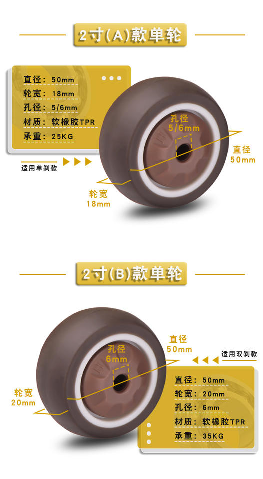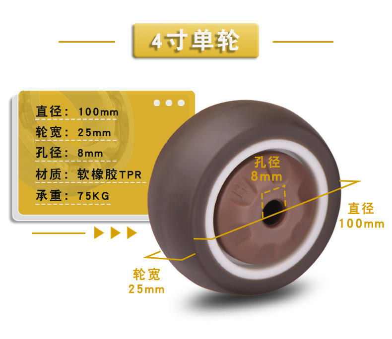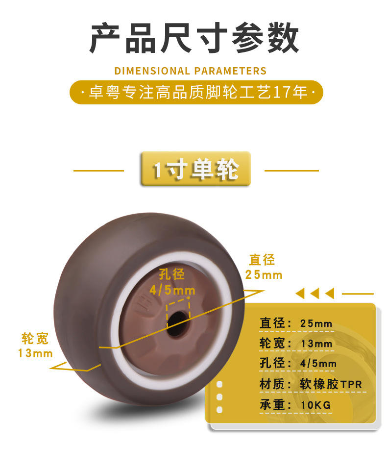 ล้อเลื่อนขนาดเล็ก 1-2.5 นิ้ว ล้อเดี่ยว TPR เงียบ ทนทานต่อการสึกหรอ ลูกปืนทรงกรวย ล้อเลื่อนแบบลูกกลิ้ง รับประกัน 3 ปี