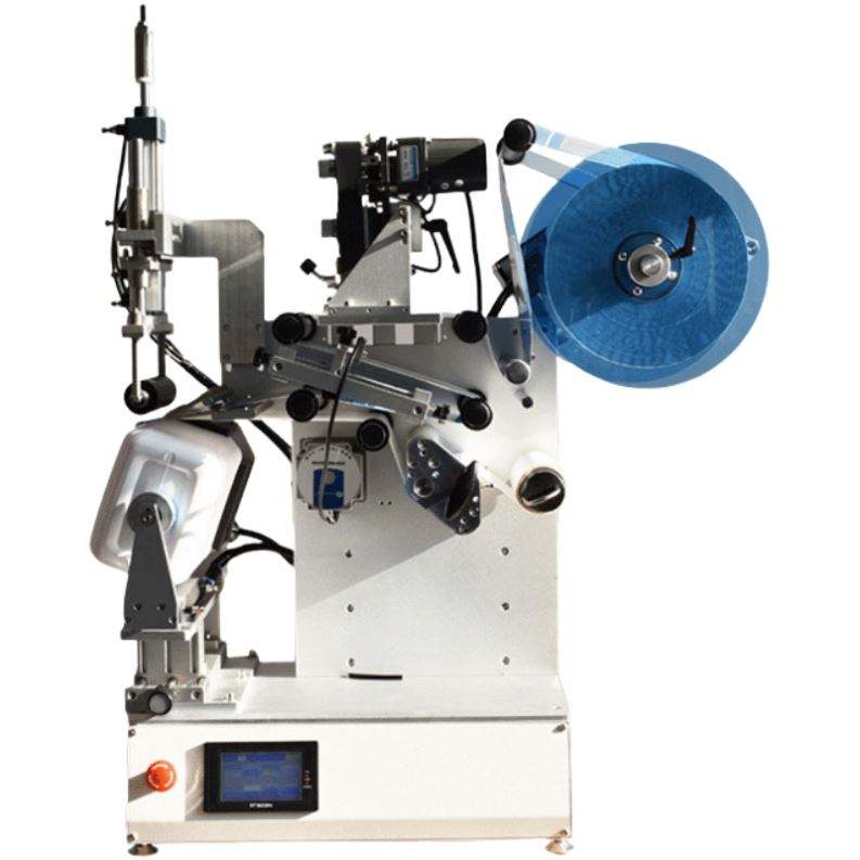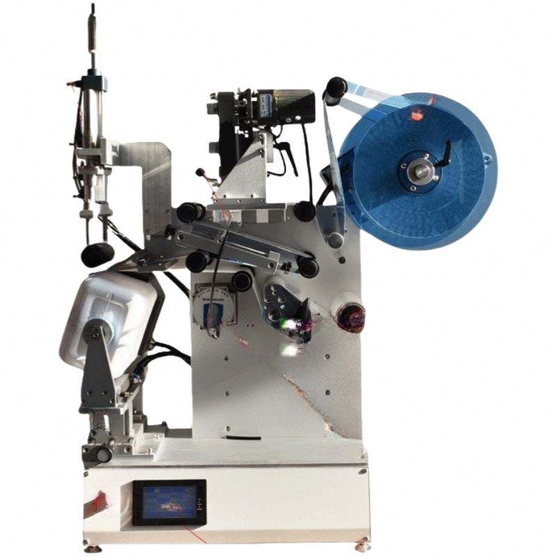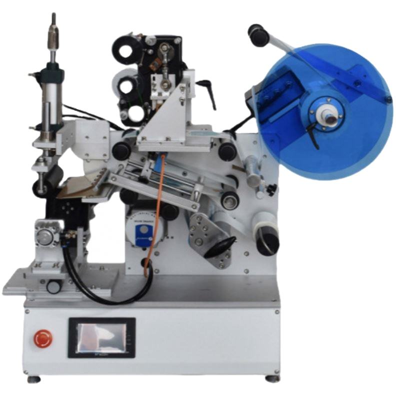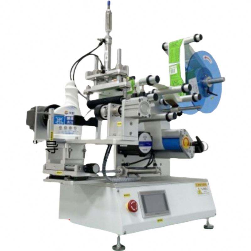 เครื่องติดฉลากแบบอัตโนมัติเต็มรูปแบบสำหรับขวดน้ำทรงสี่เหลี่ยมมน กล่องเครื่องสำอาง และกล่องจัดส่งขนาดเล็กบนโต๊ะ