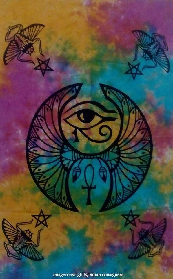 โปสเตอร์ผ้าม่านขนาดเล็กผ้าปูโต๊ะผ้าฝ้ายดวงตาของฮอรัสฮิปปี้แขวนผนังโยนหลายสีที่สวยงามโดยผู้ส่งสินค้าชาวอินเดีย
