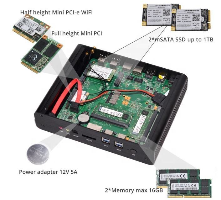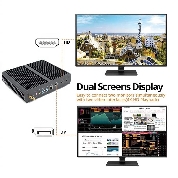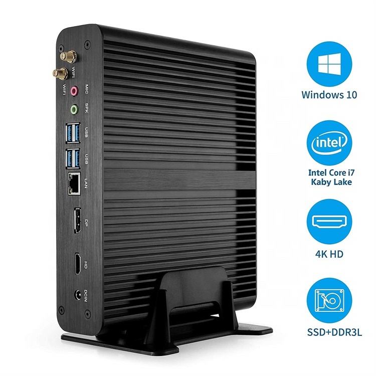 Small Tower คอมพิวเตอร์เดสก์ท็อป I7,All In One PC I7เมาส์ไร้สาย Server Core 6600U ไมโครพีซีไม่มีพัดลม Mini Pc X86กำลังไฟต่ำ12V