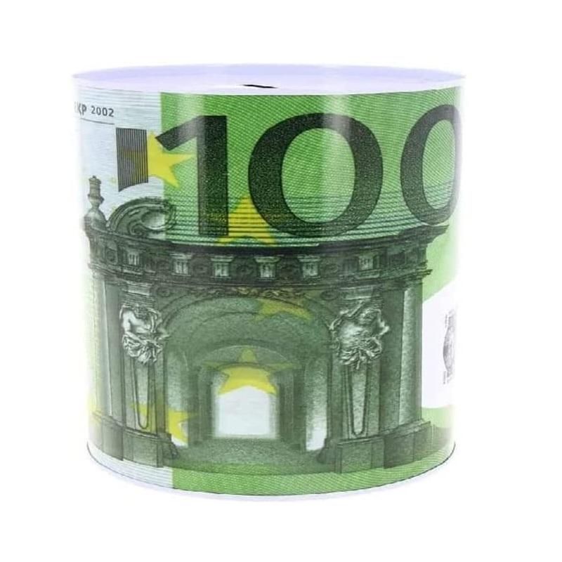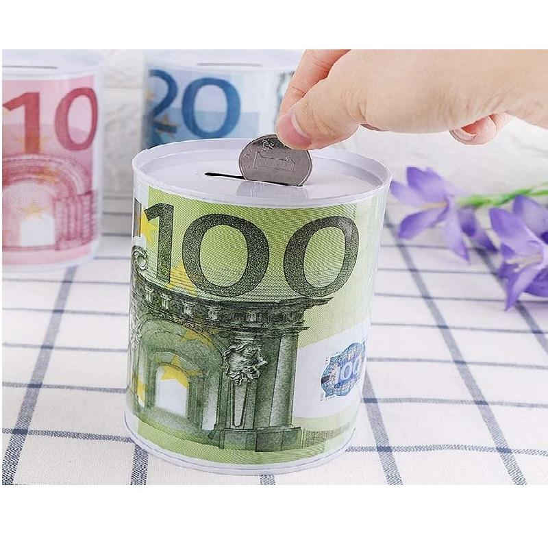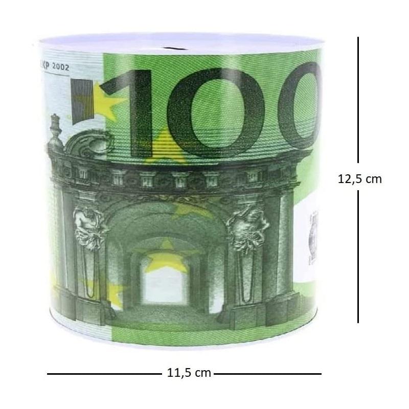 Small Vintage 100 Euro Banknote Cylindrical 11.5x12.5 cm Money Box Non-Opening Coin Tin Can Vintage Piggy Bank