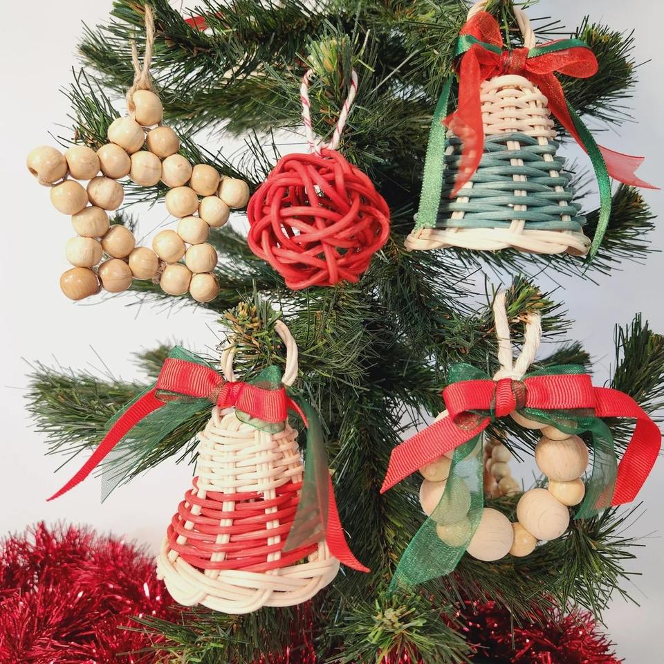 ระฆังแดงหวายแขวนของประดับทำด้วยมือ,กระดิ่งหวายสำหรับตกแต่งต้นคริสต์มาสผลิตในเวียดนาม