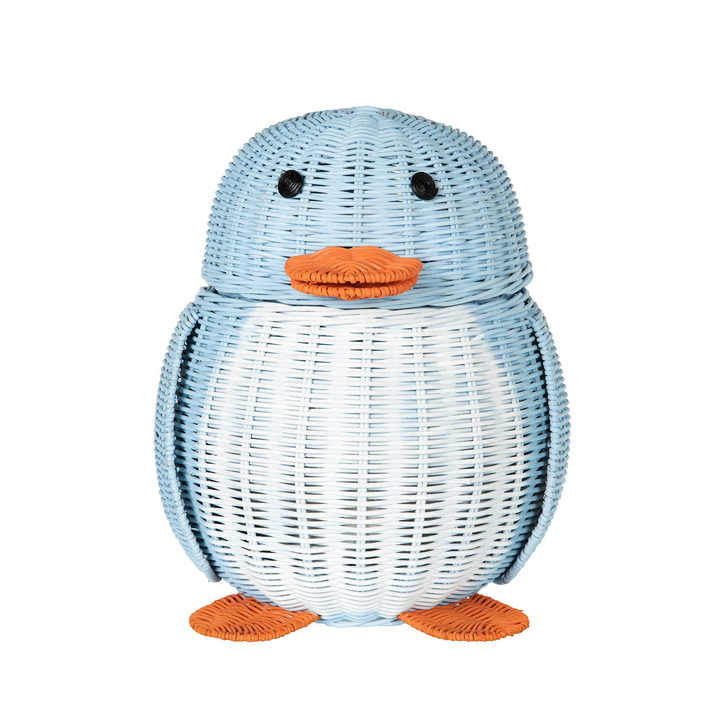 ตะกร้าสานขนาดเล็กสำหรับเด็กตะกร้าหวายรูปเป็ดสีฟ้าน่ารักสำหรับใส่เสื้อผ้าและของเล่น