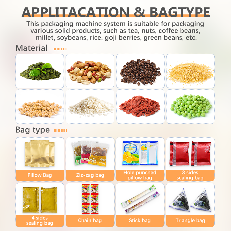 เครื่องบรรจุภัณฑ์อัตโนมัติขนาดเล็กใช้สำหรับบรรจุผลิตภัณฑ์อาหารที่มีรูปแบบเป็นเม็ด