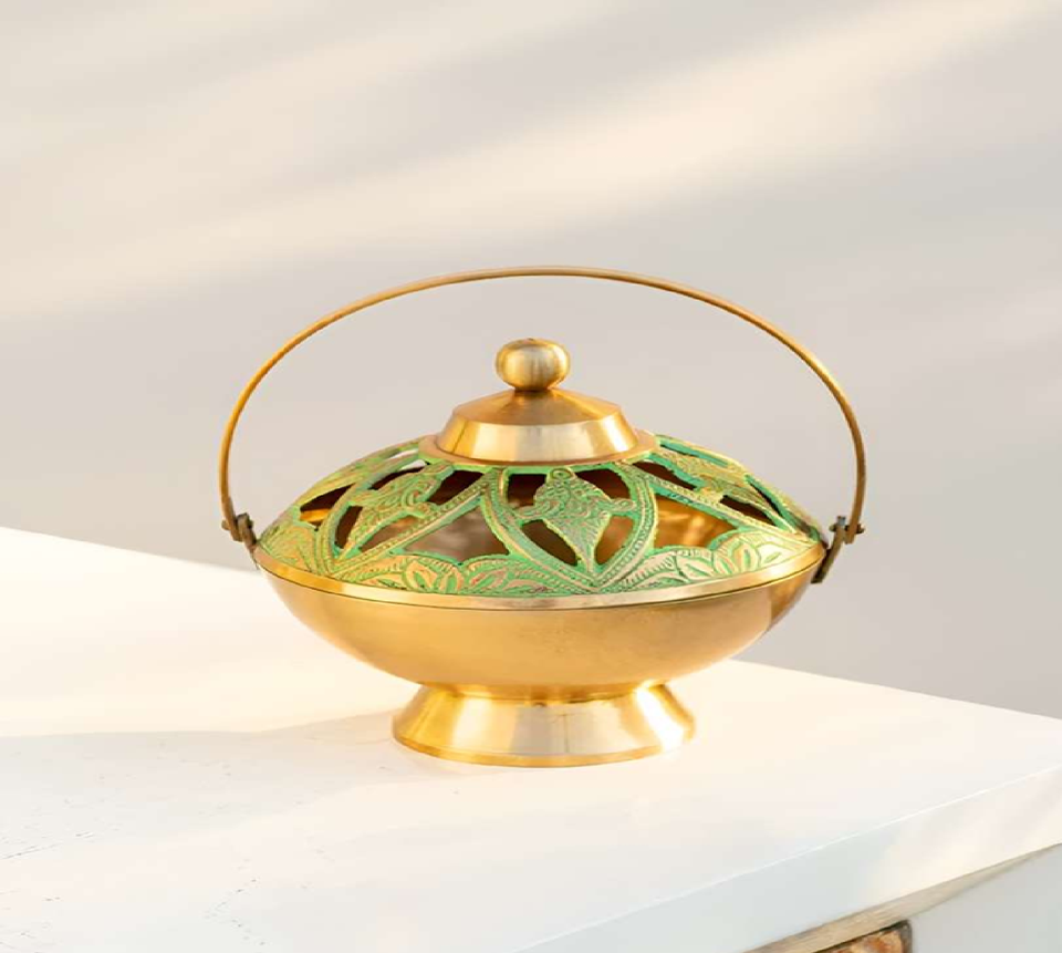 โคมไฟอโรม่าทองเหลืองขนาดเล็กเครื่องอุ่นน้ำมันสำหรับตกแต่งบ้านงานตัดเครื่องกระจายกลิ่นหอมโลหะมีจำหน่ายในราคาขายส่ง