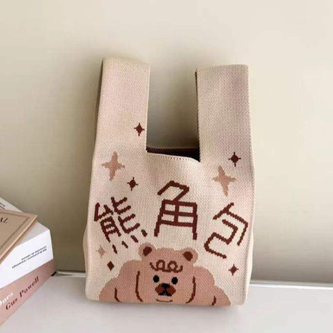 กระเป๋าถือทรงสี่เหลี่ยมเล็กสำหรับผู้หญิง ดีไซน์เฉพาะตัว กระเป๋าถักลายการ์ตูน กระเป๋าถักแบบเสื้อกั๊ก กระเป๋าสะพายข้าง ขายส่ง