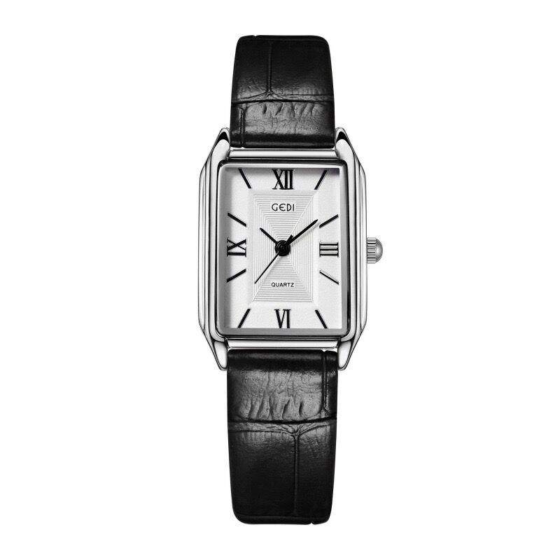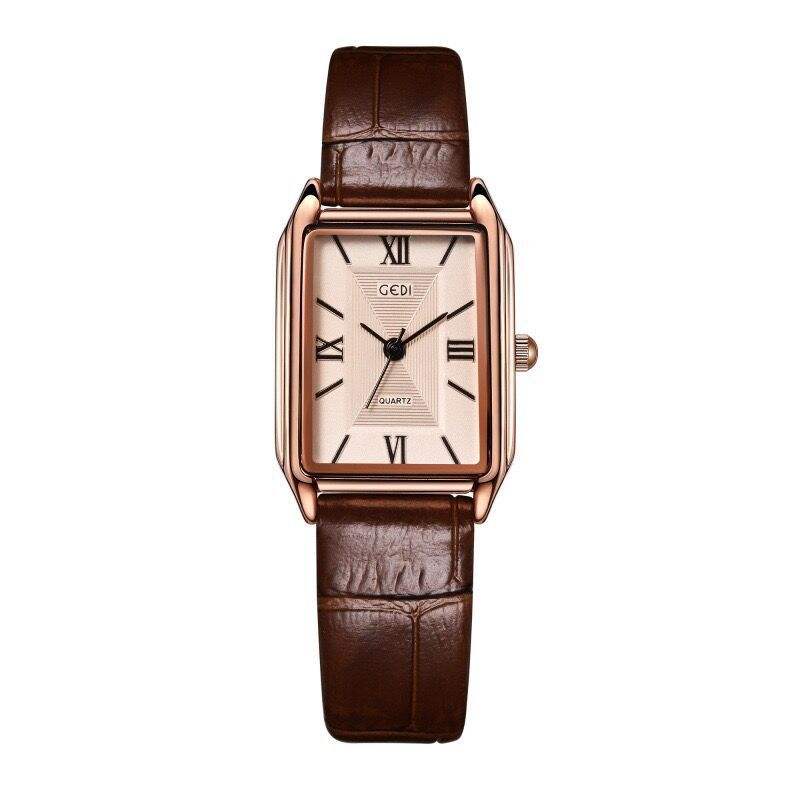Small square watch with leather strap minimalist design casual style compact size waterproof quartz watch for students and women