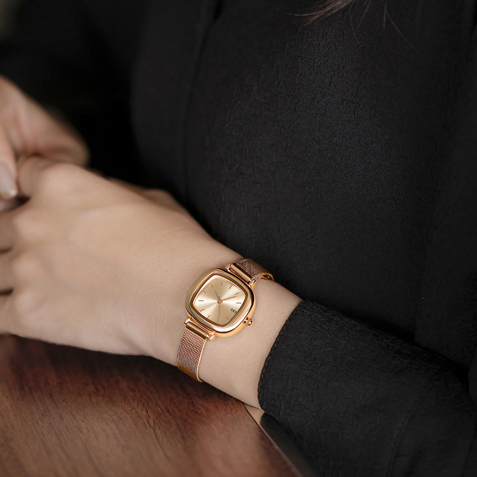 นาฬิกาผู้หญิงทรงสี่เหลี่ยมเล็กกะทัดรัดและเรียบง่ายสง่างามนาฬิกาควอตซ์อเนกประสงค์สำหรับนักเรียน