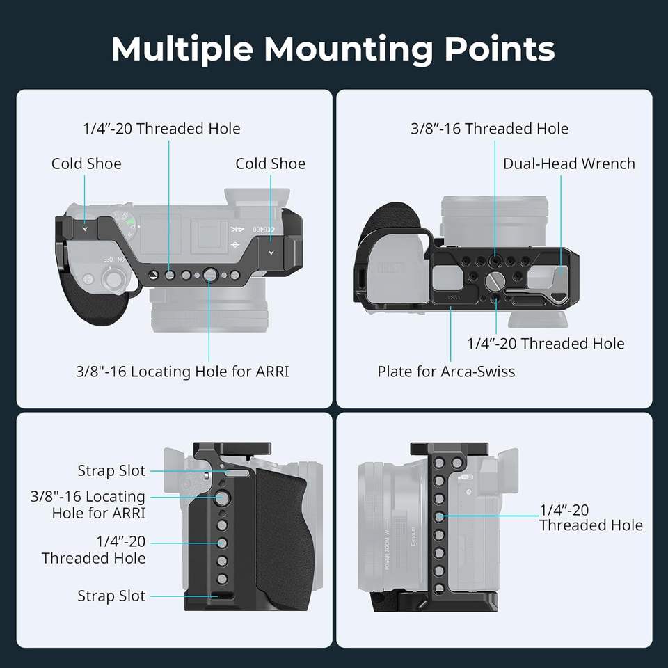 กรงขนาดเล็กที่มีด้ามจับซิลิโคนและรองเท้ากันความเย็นสำหรับโซนี่ A6100 A6300 a6400-3164
