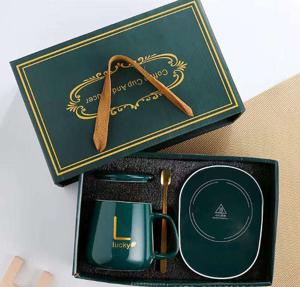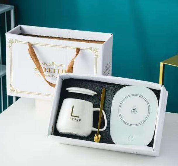 แก้วอุ่นร้อนไฟฟ้าอัจฉริยะ 380 มล. พร้อมแผ่นรองอุ่นร้อนแบบควบคุมอุณหภูมิ ทำจากเซรามิก สำหรับกาแฟ น้ำ ใช้ในออฟฟิศ บ้าน หรือเป็นของขวัญ