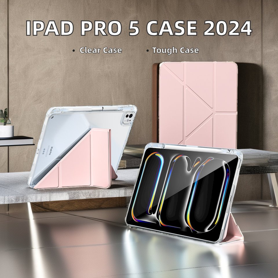 เคสแท็บเล็ตอัจฉริยะ5G สำหรับ iPad Pro 11นิ้ว (M4) 2024 PC โปร่งแสงฝาครอบหนัง PU ปกป้องการนอนหลับเป็นมิตรกับ RoHS