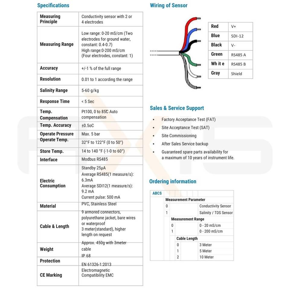 เครื่องวิเคราะห์น้ำดิจิตอลอัจฉริยะ Smart ABCS พร้อมอิเล็กโทรด 3 เมตร IP68 ระบบทำความสะอาดตัวเอง สาย RS485 เซ็นเซอร์วัดค่าการนำไฟฟ้าและความเค็ม ความแม่นยำ 1%