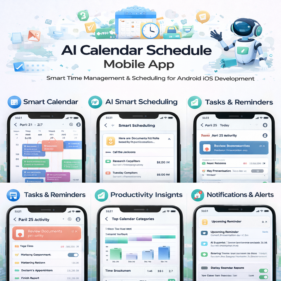 การพัฒนาแอปจัดการกำหนดการอัจฉริยะด้วย AI สำหรับระบบปฏิบัติการ Android และ iOS บริการซอฟต์แวร์มือถือสำหรับแพลตฟอร์มจัดการเวลาอัจฉริยะ