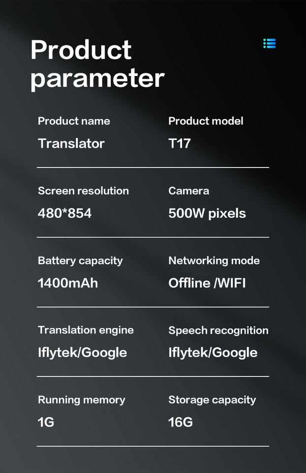 ไวไฟ, การแปลภาษา, เสียงการแปล, หน้าจอสัมผัส, Translatorลักษณะ