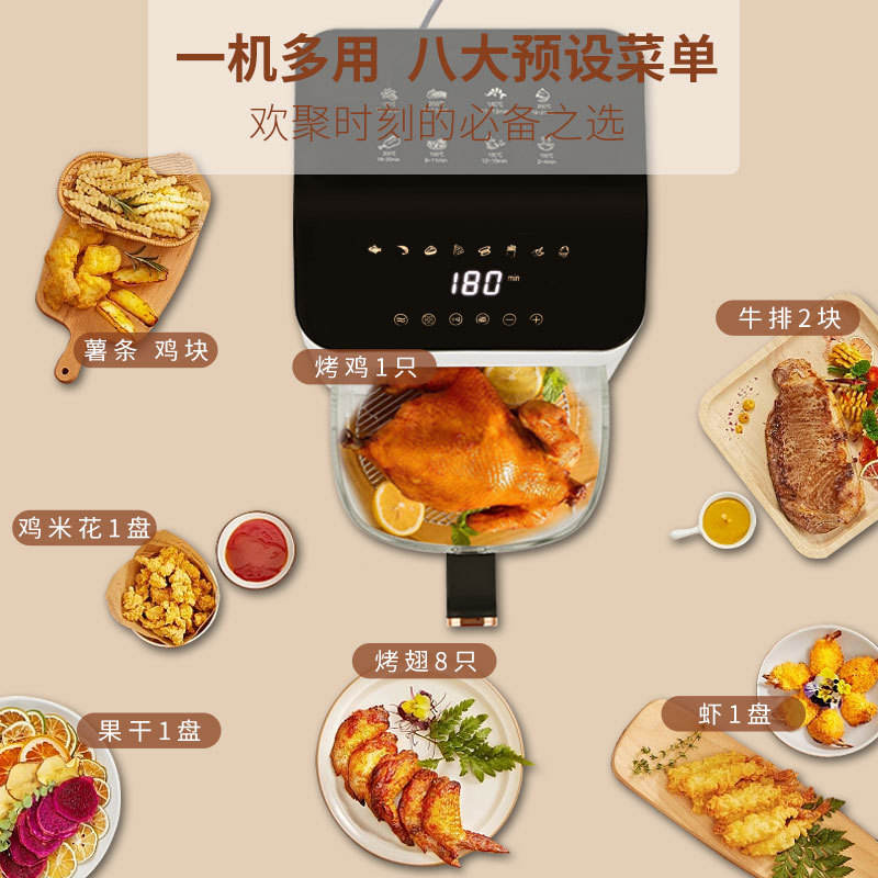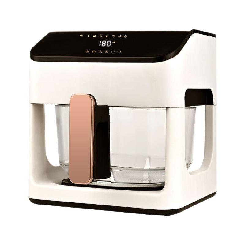 หม้อทอดไร้น้ำมันอัจฉริยะ 10 ลิตร สีขาว ทรงสี่เหลี่ยม ควบคุมด้วยไมโครคอมพิวเตอร์ ฟังก์ชั่นอบ หม้อแก้วใส ระบบอัตโนมัติเต็มรูปแบบ