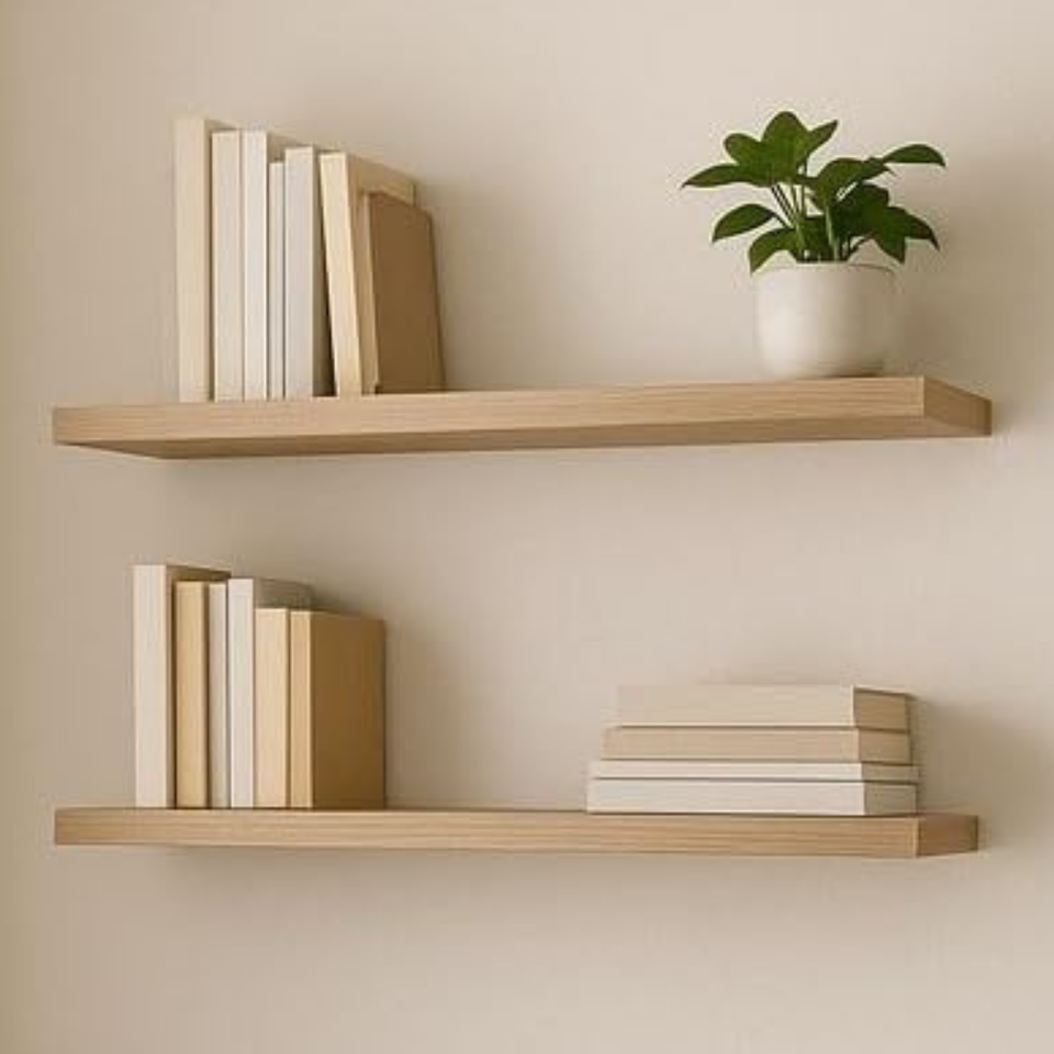 ชุดชั้นวางของติดผนังไม้แกะสลักลายศิลป์ ชั้นวางของแบบลอยตัว 2 ชิ้น สไตล์เรียบง่าย สำหรับตกแต่งห้องนั่งเล่นสไตล์บ้านไร่