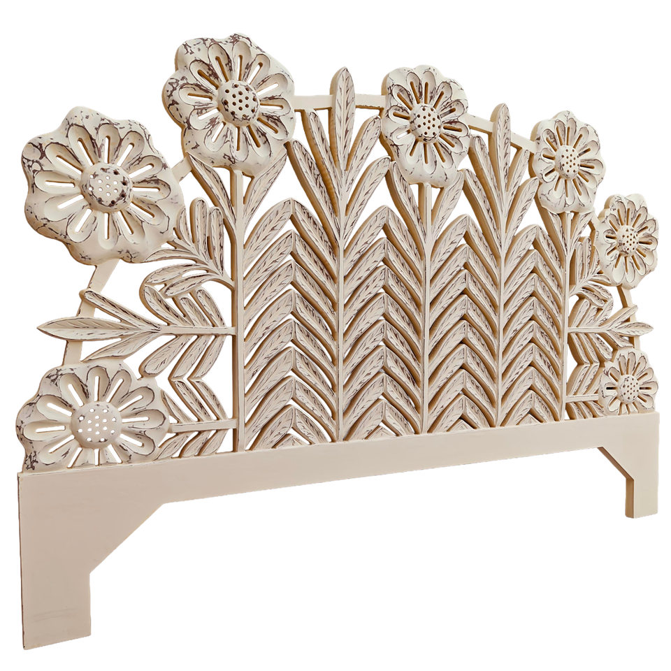 หัวเตียงไม้แกะสลักลายดอกไม้ขนาดคิงไซส์ งานแฮนด์เมด ตกแต่งผนังห้องนอน ด้วยไม้ประกอบคุณภาพสูง เฟอร์นิเจอร์ห้องนอนไม้